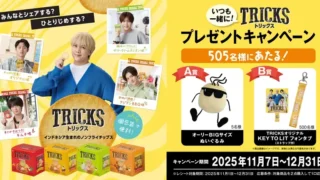 インドネシア発のノンフライチップス「TRICKS」が、豪華なプレゼントキャンペーンを実施する。デビューを目指すみなさんにとって、注目のジュニア内グループKEY TO LITとのオリジナルコラボフォンタブや、オーリーBIGサイズのぬいぐるみを獲得するチャンスだ。2025年11月7日より応募が始まり、対象商品を2箱購入で応募可能。ヘルシーで美味しいTRICKSを楽しみながら、憧れのアイテムを手に入れる機会となるだろう。